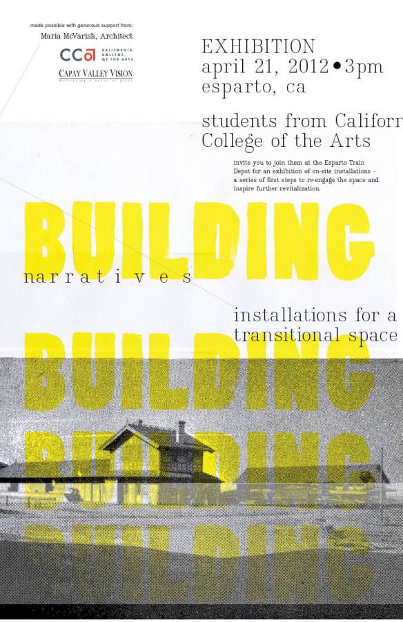 The semester is in full swing and the students are exploring some really rich ideas for their installations at the train depot. They will be giving formal presentations of their concepts in today’s class for Sue Heitman, Maria McVarish and Megan Clark (from the CCA Center for Art & Public Life). We will be recording the presentations and posting selected ones to the Mnemic website for your viewing pleasure. 🙂
